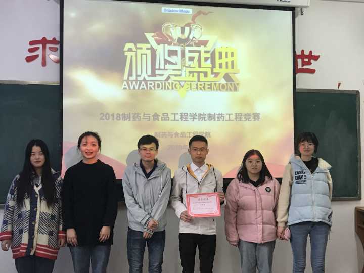 2019年4月12号上午10点,制药与食品工程学院于和剂甲座203举办了竞赛颁奖典礼,出席典礼的有制药与食品工程学院副院长王颖丽老师,学生会主席还有相关学生。