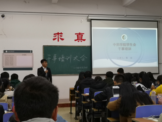 为了让中药学院学生会干事更好地适应学生会工作,更好的服务学生,中药学院学生会于2018年10月7日在和剂书院甲座110教室举办了干事培训大会。本次培训会由陈权、王淳森、李港静、刘庭希、张亚薇主讲,中药学院学生会全体干事积极参与,会议由李港静主持。