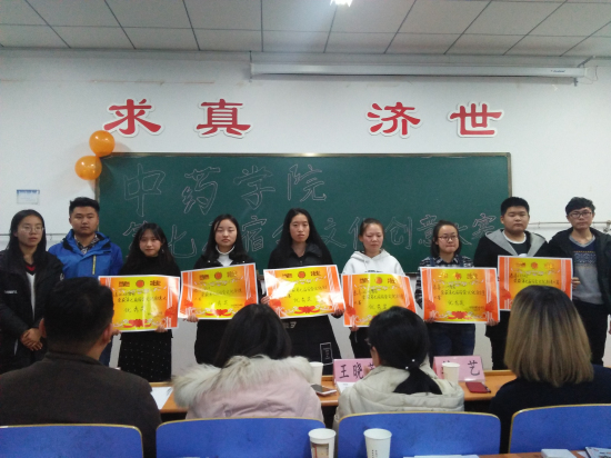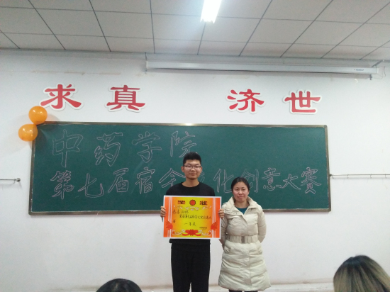 为丰富中药学院学子的大学生活,拉近广大同学间的距离,在增强宿舍成员之间合作精神和集体意识的同时提升校园文化内涵,中药学院学生会于2017年12月6日晚6时30分在和剂书院甲座309教室成功举行第七届宿舍文化创意大赛决赛。本次大赛诚邀中药学院学工办主任、分团委书记王晓英、中药学院班级辅导员杨智超、任婧、胡楠、韩艺担任决赛评委,中药学院学生会主席、副主席、各部部长及各班级代表参加了这次活动。