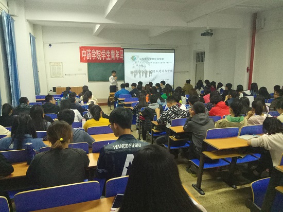 4月27日,中药学院分团委于和剂书院甲座210室,举办第一期学生青年马克思主义者培养工程,本次培训由中药学院学生会主席赵耀伟担任主讲,中药学院各班级代表及学生会各部门代表参与培训。