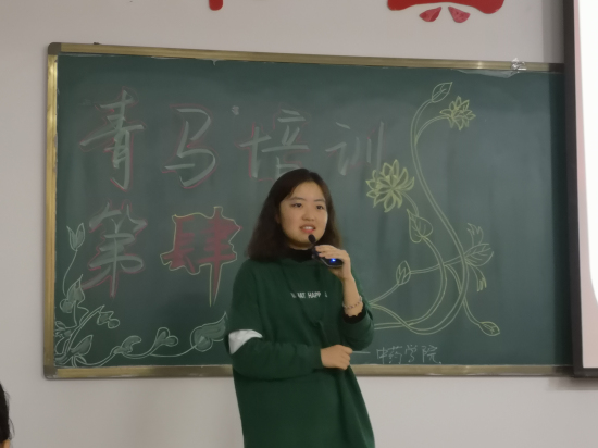 为增强大学生的时代感和使命感,中药学院于42720时在和剂书院甲座110教室开展了青马工程培训第四讲,学院160余名共青团员参加培训,中共党员、院学生会第14届青年委员于杰主讲。