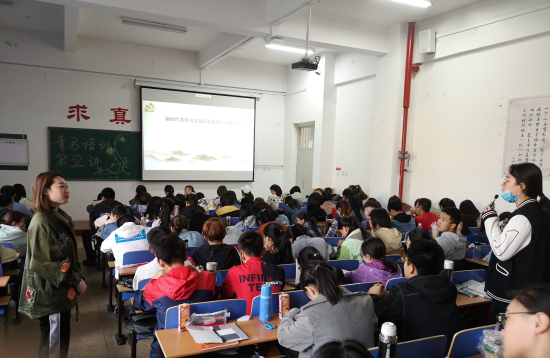 全体共青团员齐唱《中国共青团团歌》。接着,韩老师通过简要阐释中华民族从站起来、富强来和强起来,指明了什么是中国特色社会主义新时代,同时就“新时代青年与父辈们有什么不同”这个问题与学生展开互动,几名同学主动发言,让大家更加明晰了自己所处的时代与使命。随后韩老师带领大家重温了习总书记在北京大学师生座谈会上的讲话。最后,她就根据自身的学习、生活工作经验,结合中药学子的实际,提出了当代大学生应做一名什么样的新时代青年:一是应当做一名脚踏实地的新时代有为青年;二是应当立志成为“德才兼备、知行合一”的高素质应用型人才;三是应当努力成长为德智体美全面发展的社会主义建设者和接班人。
