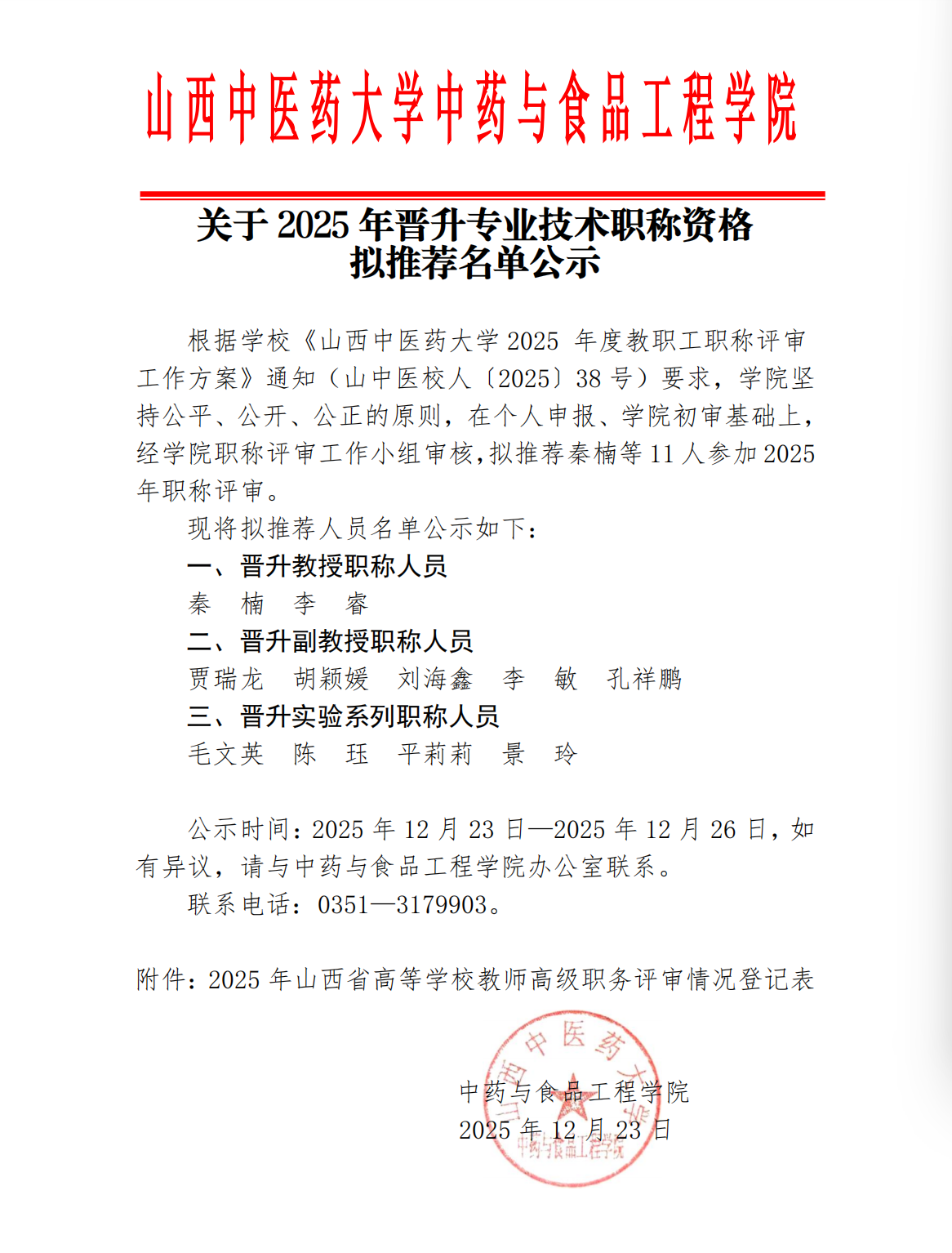 关于2025年晋升专业技术职称资格拟推荐名单公示