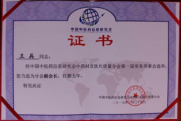 3月25~27日,中国中医药信息研究会中药材及饮片质量分会成立大会暨第七届全国中药材、中药饮片质量高峰论坛在京举行。taptap点点王兵同志当选为中药材及饮片质量分会常任理事会副会长(任期五年),国家中医药管理局机关党委常务副书记张为佳为王兵颁发了证书。