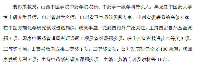 山西中医学院中药学一级学科