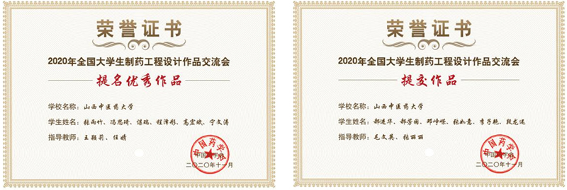 在全国大学生制药工程设计竞赛中,学院派出的两个参赛队12名学生,克服重重困难与阻力,从全国109个学校222份作品中脱颖而出,成功有一只队伍进入前68名,进入入围赛,进行了壁报的提交和展示。获得提交作品证书和提名优秀作品证书。