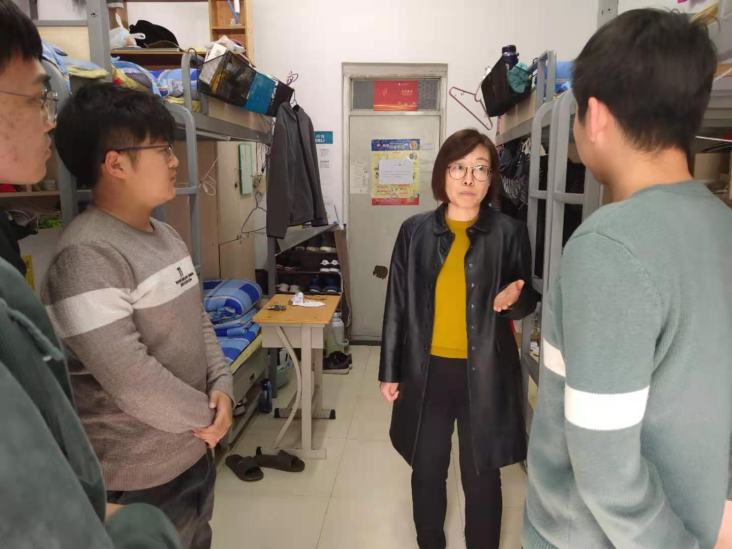 2021年3月8日,为确认学生安全返校并说明开学应注意的相关事项,庞老师特亲临宿舍看望同学们,了解返校情况,对于毕业生的实验、考研、找工作都是头等大事,老师了解大家的近况,并悉心指导,解决困惑。并就少数学生请假参加生源地各类考试的问题,同时学院分管领导的请假批准权限只有一周时间。超过一周以上必须经过学校相关领导批准。所以,如果同学们的考试地点不在太原或榆次,只能先按学校要求时间返校,届时再请假回去参加相关考试。确有在医药单位实习的学生,要签订校外实习三方协议与家长知情承诺书!
