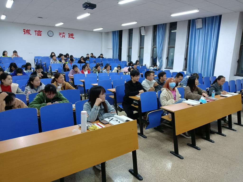 首先,他以幽默的笑话开场,调动同学们的积极性,向同学们讲述了学习中常见的问题。然后,他耐心的解答同学们的问题,充分向同学们讲解考研与就业的优缺点以及可能会面临的问题。