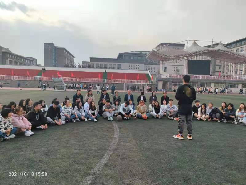 2021年10月18日,2020级药茶班在杏林体育场举行“走出教室、走下网络、走向操场”主题班会,taptap点点官方网站党委副书记梁峰岗出席,分团委全体专职辅导员参加,班会由药茶班辅导员孟喆主持。