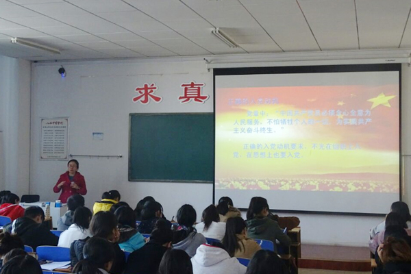 第四讲庞维荣以“加强理论学习,提升政治素养”为题,从党的理论知识体系,具体阐述了党的性质、纲领、指导思想,党的最高理想和最终目标,党的思想路线、党的建设及基本问题等一系列基本知识,再到党的基层组织及成立条件,并说明申请入党的基本要求、发展党员基本原则及发展党员的程序等,她强调,要想成为一名合格的共产党员,首先要做一名优秀的大学生,努力学习知识、学习技能、学习做人,提升自身综合素质;要想成为一名合格的共产党员,要积极发挥党员应有的作用,用自己的实际行动为同学、为学校、为社会贡献自己的力量。