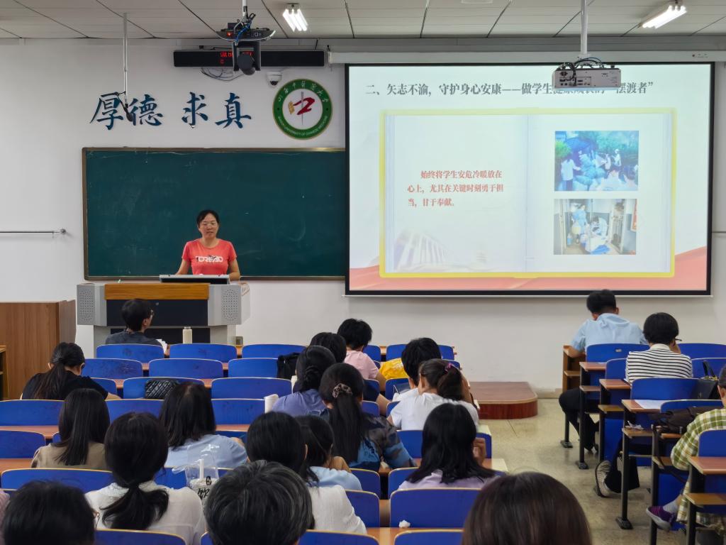 会上,赵瑞宝带领大家学习了2024年全国教书育人楷模——复旦大学赵东元教授等三位高校优秀教师的育人先进事迹,并对学院的师德师风工作提出了具体要求。她指出,全体教师要以优秀教师为榜样,涵养高尚师德,关爱学生,尊重学生,做学生的良师益友,自觉践行“四有”好老师标准,努力成为业务精湛、学生爱戴的好老师。