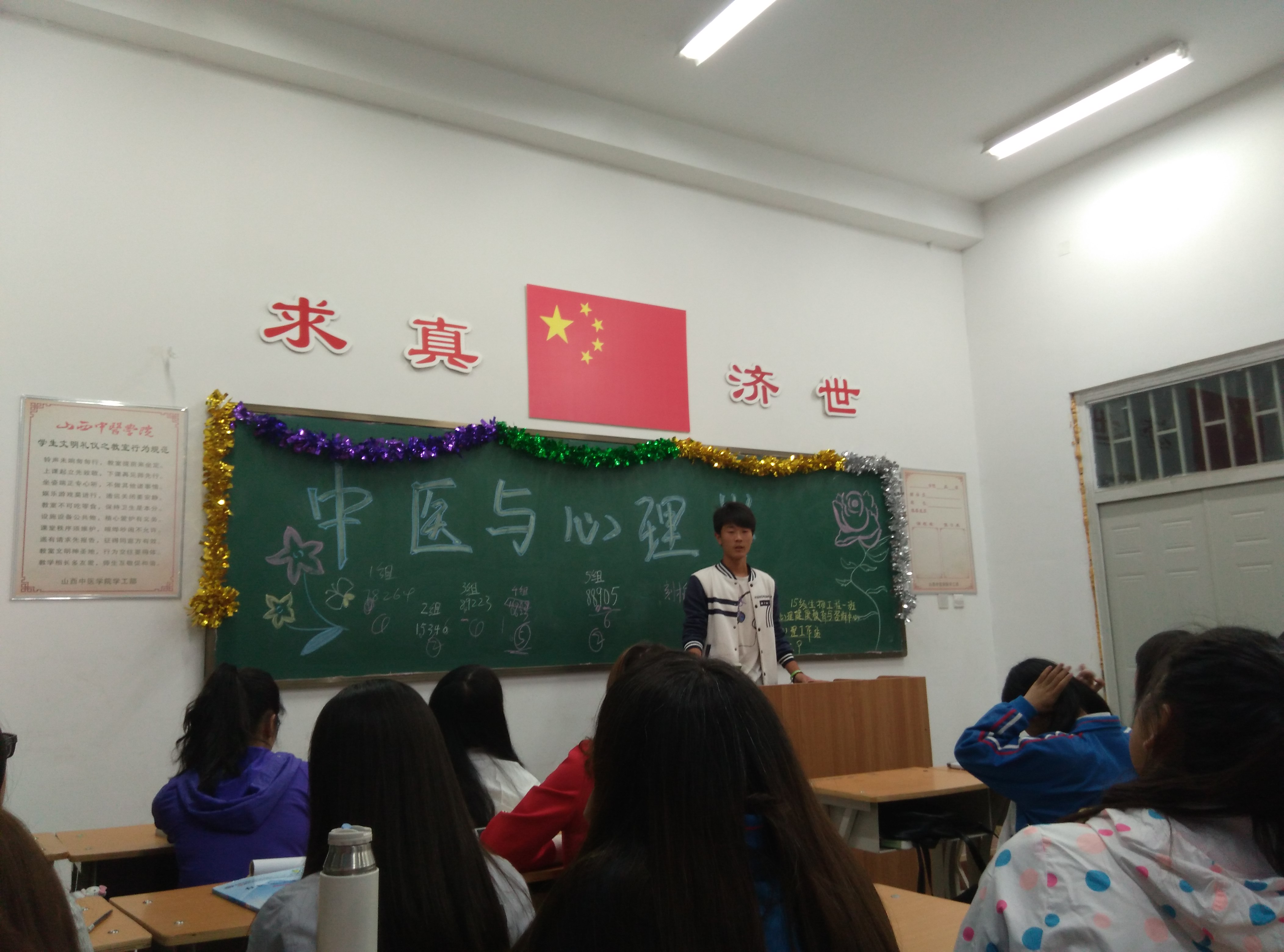 为使同学们了解中医与心理学的关系。生物工程一二班于5.9日晚七点半在仁爱书院106教室开展"中医与心理学"宣讲活动。本次活动由心理工作站工作人员主持,生物工程一、二班全体同学参加。