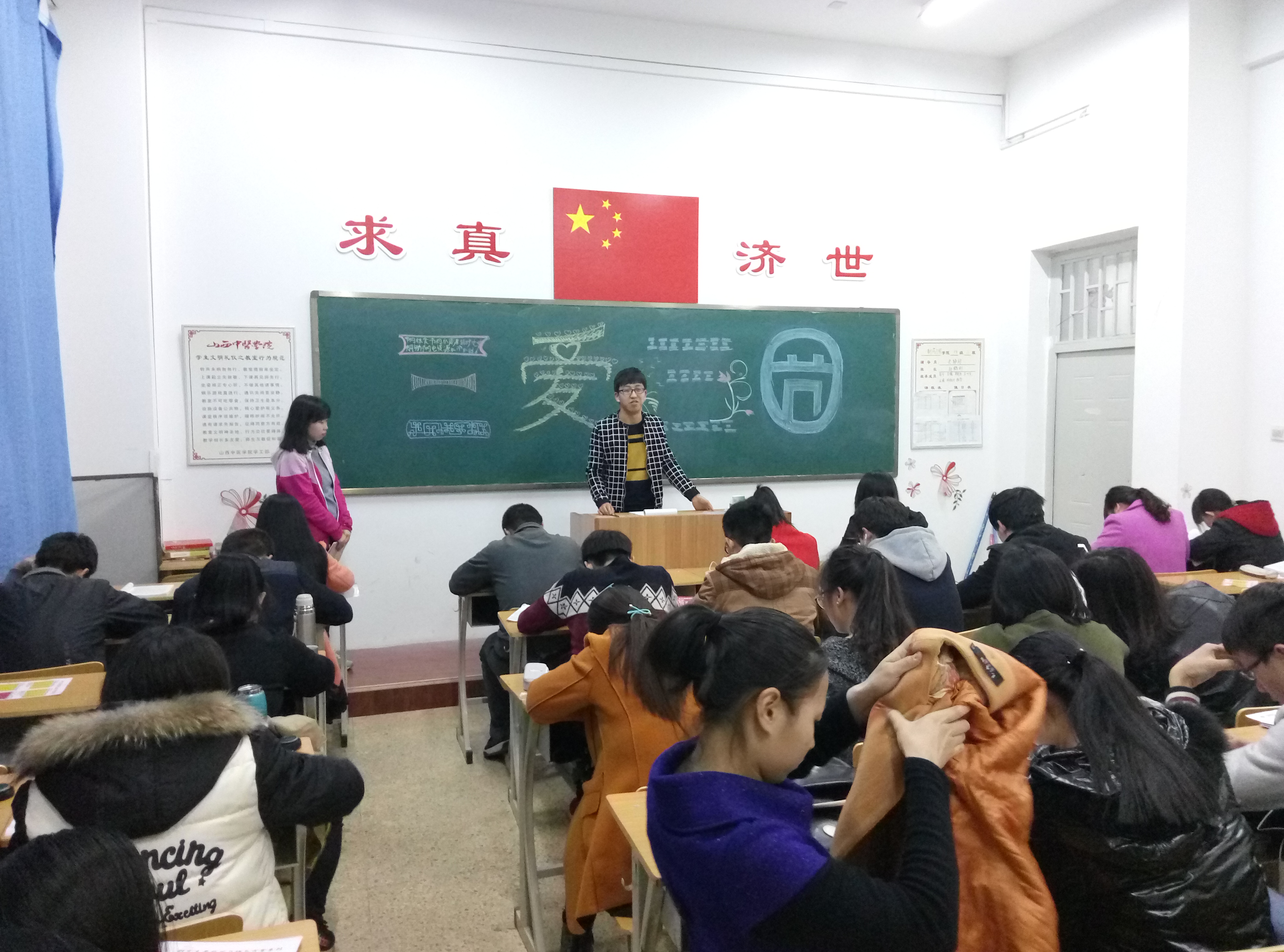 2016年3月20日,14级制药2班于和剂书院106教室举办了以"三爱三节"为主题的团日活动。