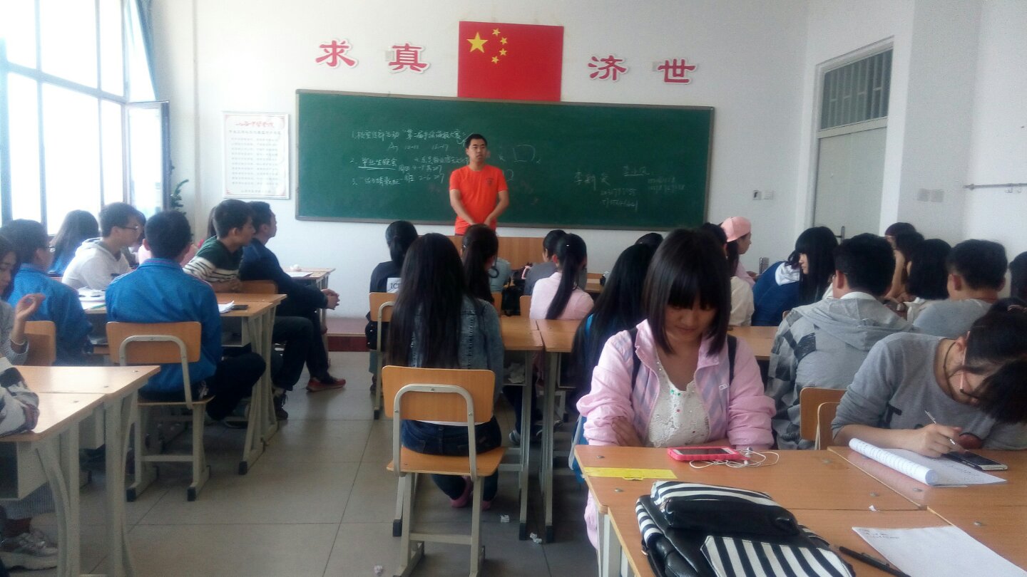 2016年5月16日下午三点15级制药一班在仁爱书院405教室召开以"安全教育"为主题的班会,会议由导员主持,同学们都按时到达。