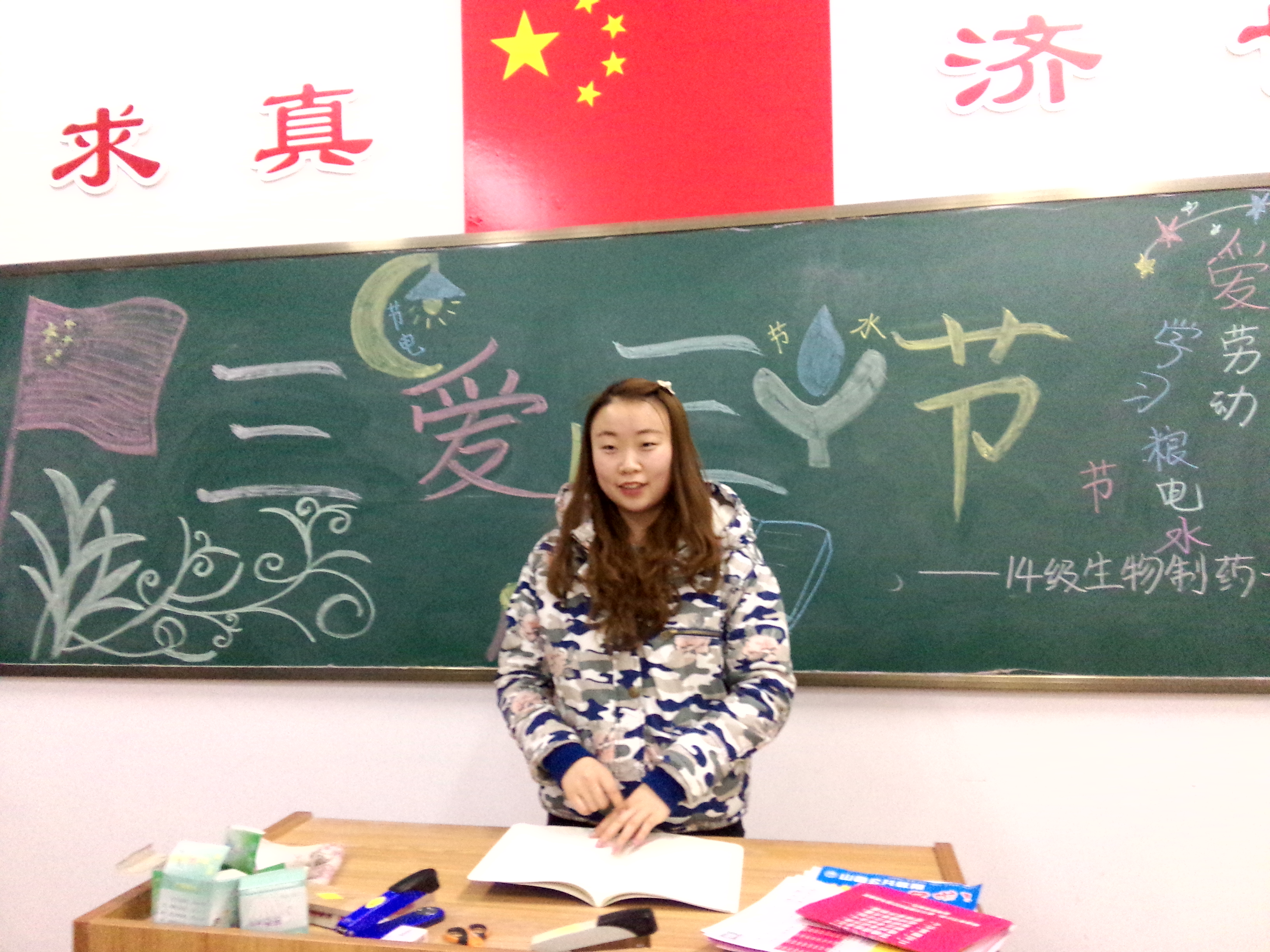 为了全面实施大学生素质教育,认真落实立德树人任务的基本要求,培育和践行社会主义核心价值观,深化中国梦教育,将“三爱三节”活动真正贯穿于我们的生活实践中,2016年3月15日制药与食品工程学院2014级生物制药1班于药学楼108教室开展以爱学习、爱劳动、爱祖国“三爱”和节粮、节电、节水“三节”为主题的团日活动,活动由团支书王建宇主持。