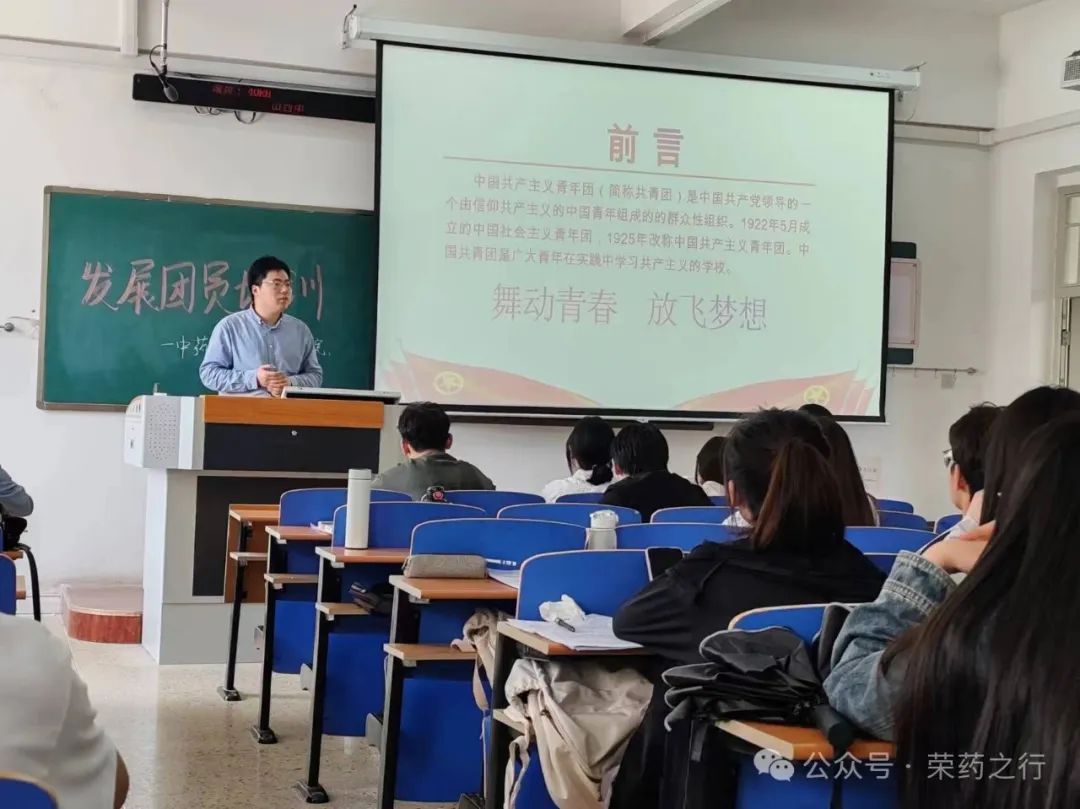 刘文强以“舞动青春,放飞梦想”为主题,引领同学们回顾共青团的知识:什么是共青团以及团旗团徽团歌的历史来源。他以深刻的历史角度讲解阐明了作为一名共青团员的使命责任,并以一名党员的身份向在座团员提出鼓励及未来愿景。他在课堂中呼吁共青团团员们要无怨无悔地追随团的脚步,让团旗上的那一抹鲜红指引大家燃烧自己美好的青春!