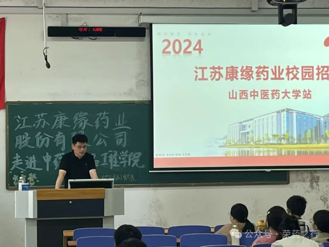 会议伊始,主讲人以研发、生产、销售、企业文化等多个维度为切入点,系统且专业地为同学们梳理了康缘药业的集团概况与发展成就。通过生动的案例和详实的数据,阐述了康缘药业在中医药领域的创新实践,以及在提升产品质量、推动中药现代化方面的积极探索。随后,主讲人针对同学们关心的行业未来发展趋势和市场需求问题进行了深入剖析,并且表明在未来将根据应聘者的专业技能、综合素质以及发展潜力等多方面因素进行综合评估,提供其具有市场竞争力的薪资待遇和福利体系。他希望通过此次交流活动,能够吸引更多有志于中医药事业的优秀学子加入康缘药业,共同推动中医药产业的繁荣发展。