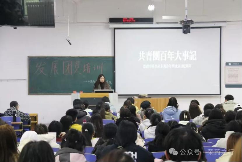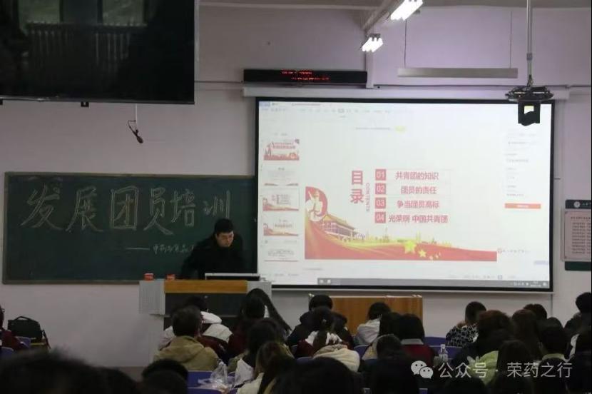 王鑫玥以“我的青春我的团”为主题,概述了共青团的基本知识并带领同学们共同朗读了入团誓词,对入团的基本要求进行讲解,同时对团员管理细则进行介绍,帮助新发展团员明确自身义务、规范自身行为。她通过介绍五四运动讲述五四青年节的由来和由此产生的五四精神。她呼吁,新发展团员青年应在学习和生活方面积极弘扬五四精神,深刻领悟五四精神的内核。