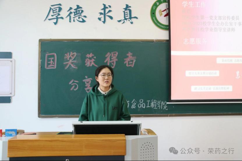 袁瑞同学通过分享自己大学三年在专业学习、社会实践和志愿服务等方面的经历向同学们介绍了自己的学习方法,她鼓励同学们积极参加各项活动和科研项目,同时分享了四六级考试的备考经验,最后对同学们提出的问题进行了详细的解答。