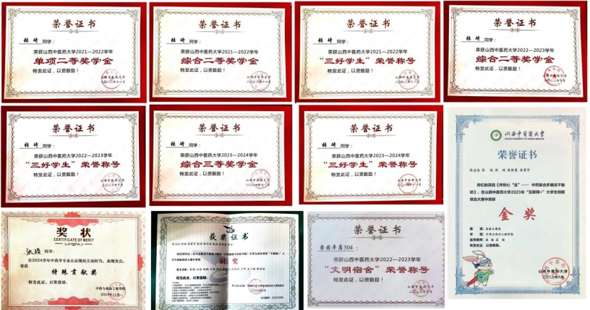 同样来自 2021 级临床中药 2 班的张琦,是中共预备党员,保研至北京中医药大学。她重视思想提升,心怀对党和国家的热爱。学习上,她勤奋刻苦,专业成绩名列前茅,连续三年获奖学金与 “三好学生” 称号。她还积极参与创新创业大赛,助力项目获奖。在担任《新中医青年》编辑时,她认真负责,用行动诠释担当,激励着室友们奋进。