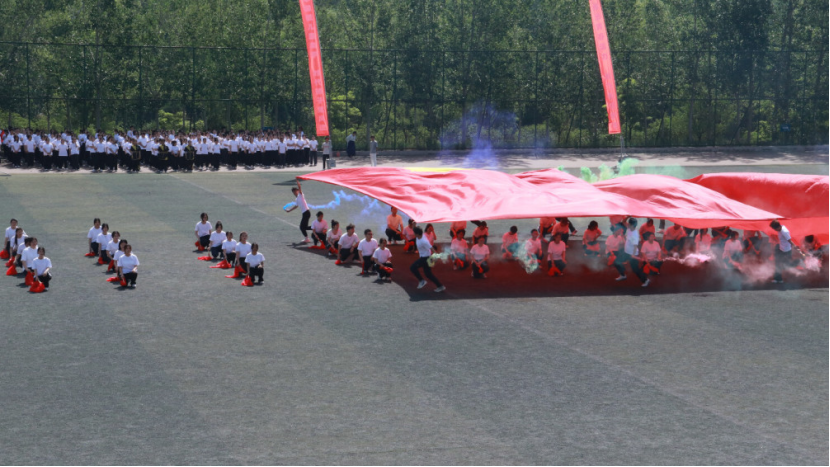 红旗飘动,我们当有恰同学少年,风华正茂之意气。烟雾四起,少年应有指点江山,激扬文字之担当。红旗舞动,光影交错,祖国似朝阳,光芒万丈!