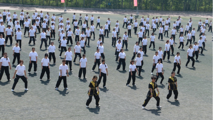 红扇在手,烈火燎原。表演者用整齐划一的红扇,成为舞动的音符,谱写着青春的韵律。