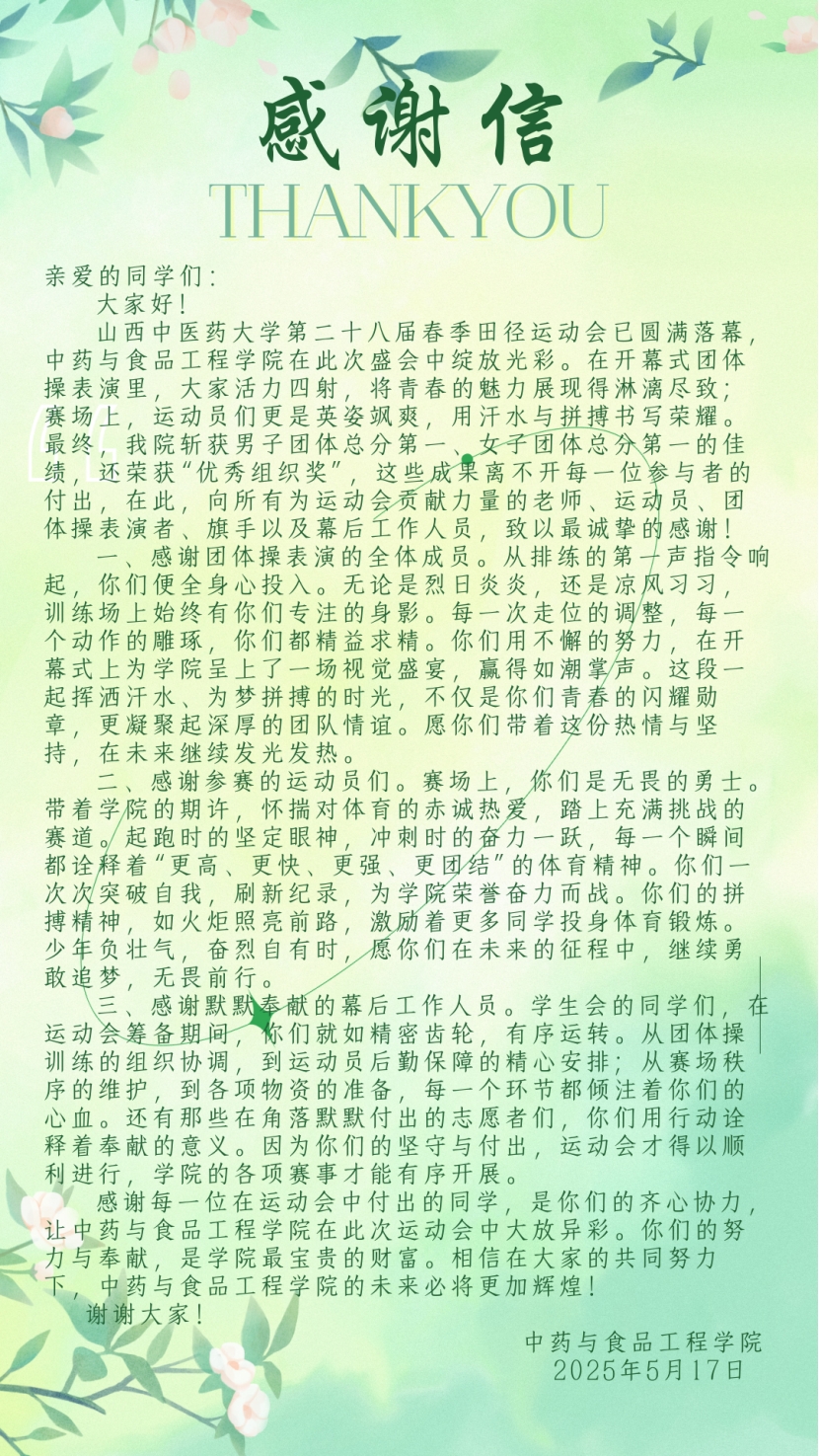 这是一场青春的盛宴,也是一次梦想的绽放。本次运动会中,中食学院的师生们以无畏的勇气、坚韧的毅力和团结的力量,书写了属于我们的荣耀篇章。我们期待着下一届运动会的到来,期待着更多精彩瞬间和动人故事在这里上演,续写中食学院的辉煌!