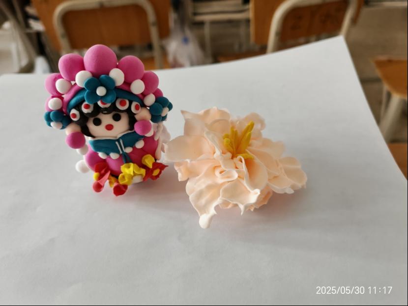 我的创作思路围绕“传统艺术与中医药文化交融”展开。将京剧娃娃的鲜明扮相——精致凤冠、斑斓戏服与中药材自然形态结合,用娃娃身旁与芍药结合,以及娃娃衣服上镶嵌着芍药画面,展现传统意象的碰撞;色彩上,以京剧服饰的红、金与药材的多元形成视觉冲击,象征文化传承与自然馈赠的对话;构图上,借鉴京剧程式化动作与中药材的随意摆放,体现古典韵味与天然质朴的反差,寓意中医药文化如京剧般,在传统中孕育独特魅力,以童趣视角唤醒人们对传统文化的记忆与共鸣。