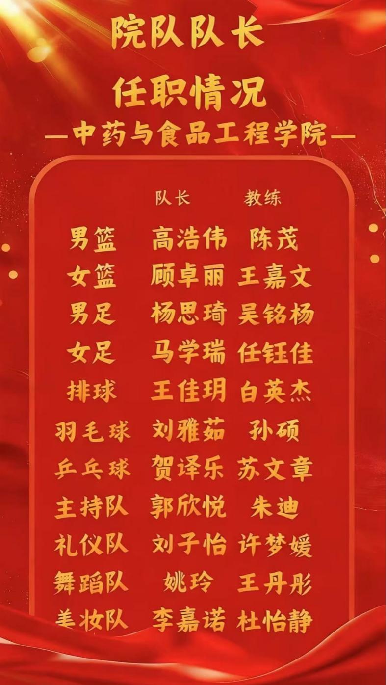 此次院队换届仪式的顺利结束,不仅为各院队注入新活力,更明确了新学年文体工作的方向与目标。未来,在学院的支持与全体成员的共同努力下,各院队必将传承优良作风、创新发展思路,在文体活动中持续绽放光彩,书写属于中食学子的青春体育华章。