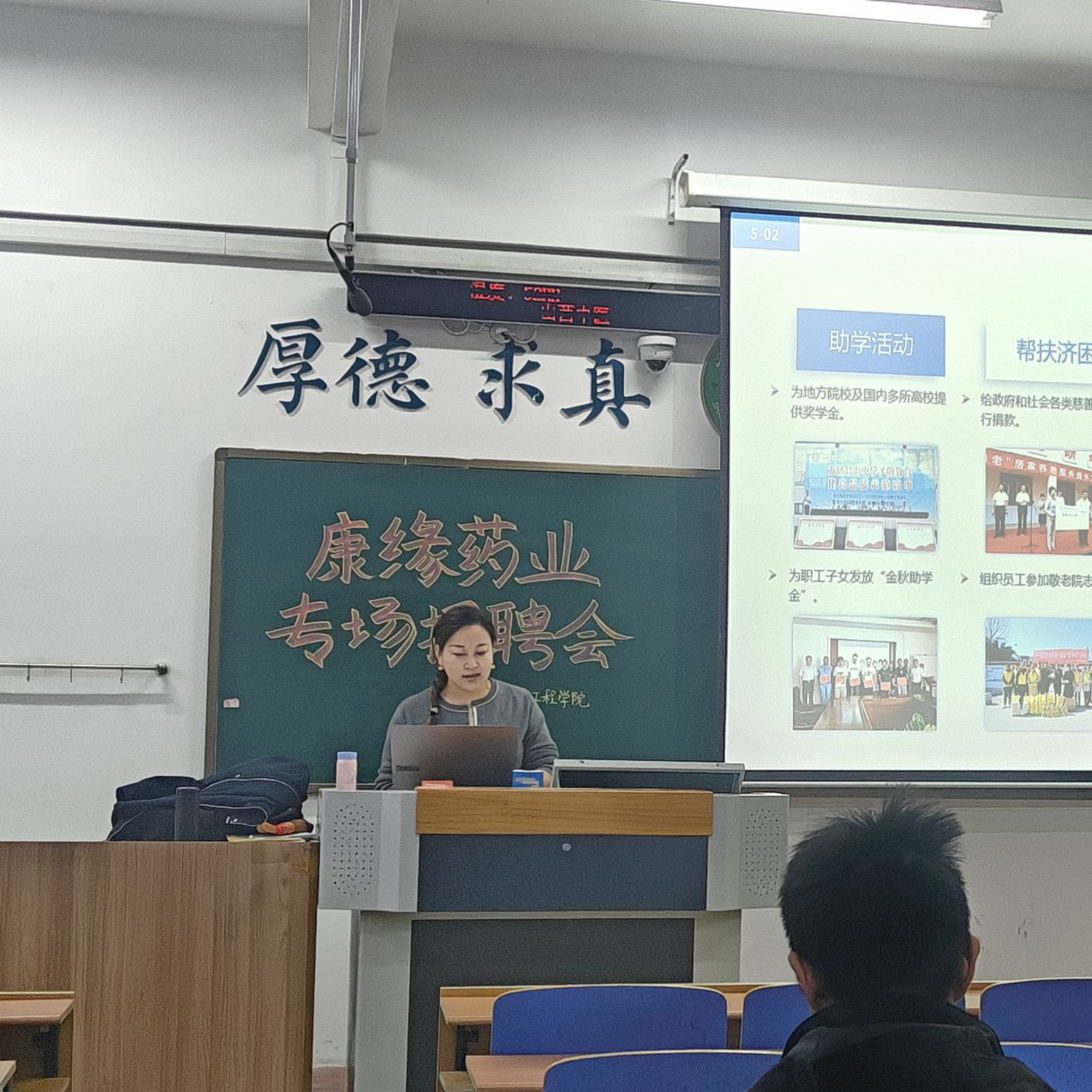 广盛原中医药有限公司宣讲活动于10月17日在大学生活动中心开讲,围绕企业介绍、行业就业形势及职业发展路径展开,带中药学专业学子深度了解这家中华老字号的现代化转型,剖析就业形势,明晰职业发展方向,助力学子规划中医药领域成长之路。