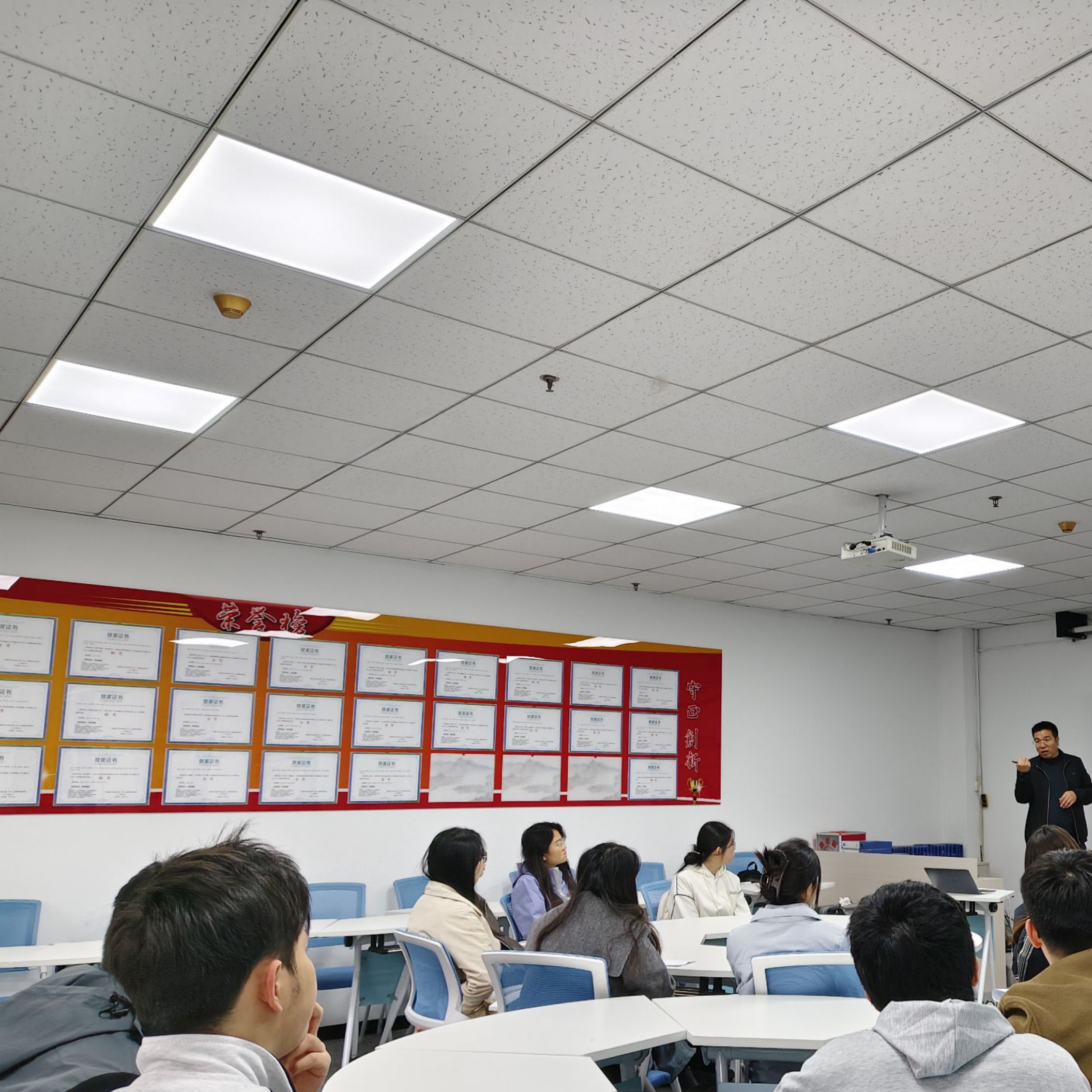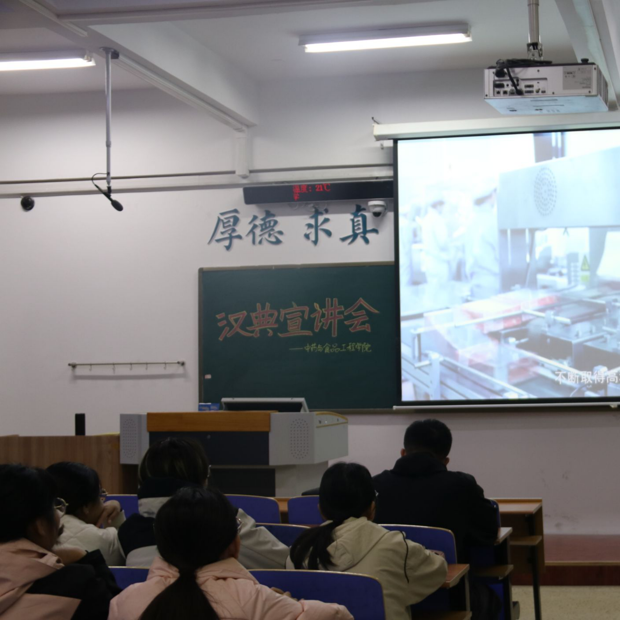 美华企业宣讲会上,宣讲人以应届生视角,从对应届生的重视、行业前景广阔、培养机制完善等方面,全面介绍了公司企业文化、发展前景、岗位优势及福利待遇,为学子们带来了一场干货满满的职场启蒙。