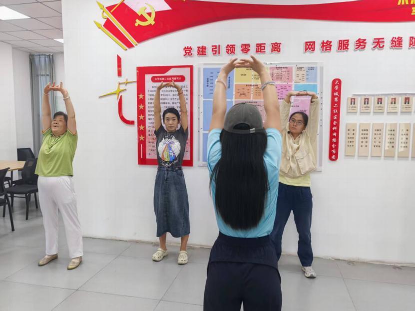 7月7日至9日,登峰枣极“三下乡”社会实践团队走进大学城第二社区,开展了系列志愿服务活动。在走访过程中,团队成员们通过教授八段锦、现场按摩指导及趣味互动,为社区居民送上了一份特殊的“健康礼包”。