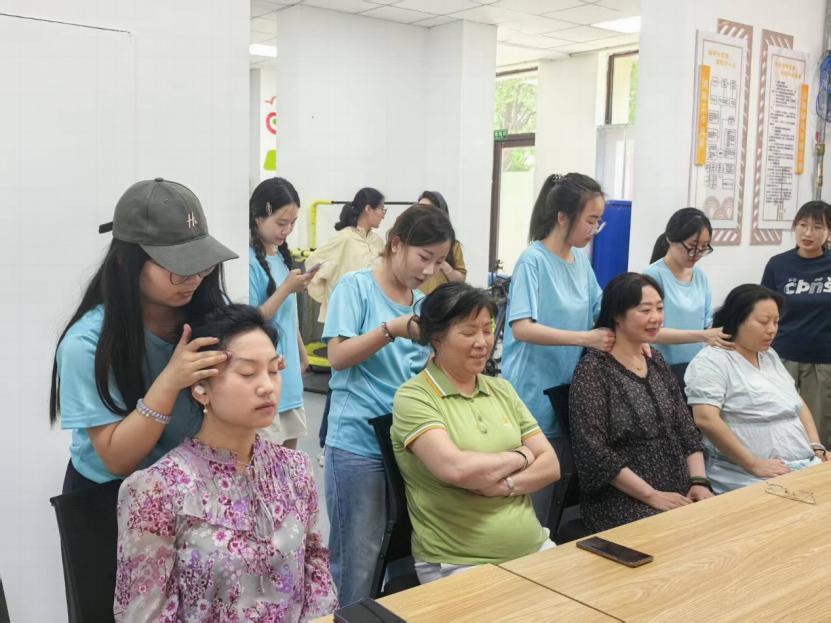 随后的按摩互动环节更掀起热潮。志愿者们结合专业知识,为居民示范颈肩、腰背的简易按摩手法,并耐心解答“如何缓解久坐疲劳”“老年人按摩注意事项”等问题。社区居民李大爷笑着说:“孩子们教的方法简单实用,以后在家就能自己按按,太方便了!”