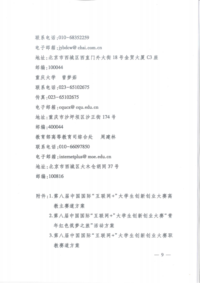 教育部关于举办第八届中国国际“互联网+”大学生创新创业大赛的通知