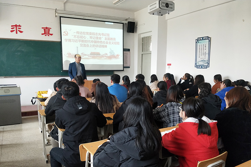 梁峰岗传达学习了校党委书记段志光在学校“不忘初心、牢记使命”主题教育学用习近平新时代中国特色社会主义思想经验交流会上的讲话精神。他指出,下一阶段各支部的主题教育要紧紧围绕学校党委提出要求,扎扎实实把各支部主题教育活动开展的更好。