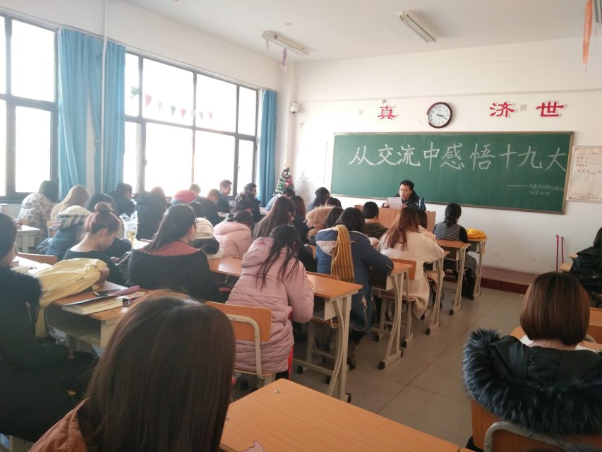 为了深入学习和宣传贯彻党的十九大精神,把全校广大团员青年的思想统一到党的十九大精神上来,把力量凝聚到党的十九大确定的各项任务来。2017年12月21日,15级食品科学与工程2班于仁爱书院412开展“在交流中感悟党的十九大”主题团日活动,本次团日活动由导员孟喆和团支书韩琦组织开展。