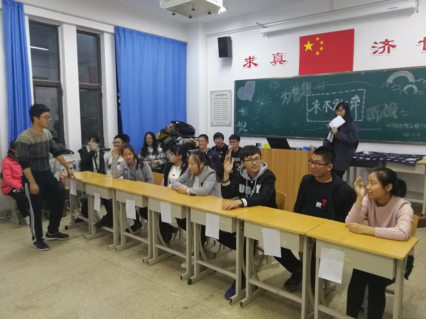2017年11月15号在和济书院204举办 为梦想而战,永不放弃 班级活动,活动由17生工班委主持。