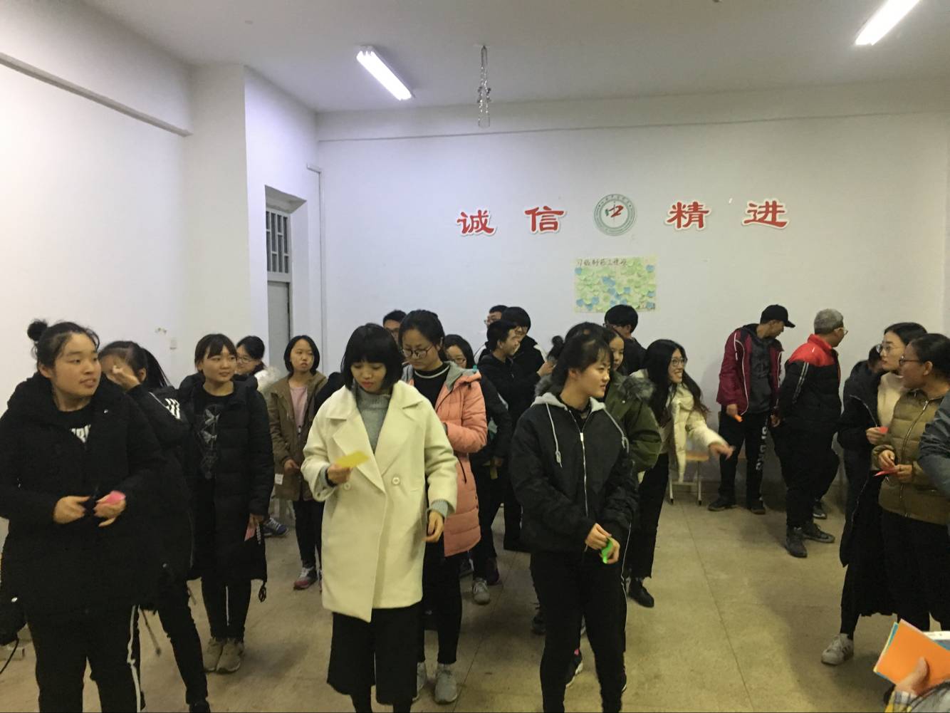 此次活动由心委担任活动的负责人,张雨竹同学辅助心委。此次活动主要是同学们一起做游戏,让大家边玩边放松。第一个游戏是“词语接力赛”,规则其实很简单,就是用抽签的方式让大家进行词语接龙。这个游戏考验大家的反应能力,也考验大家的词汇量,输的人将接受我们精心准备的惩罚。第二个游戏是三个人一组,每队的一个人说出规定的词语,说错的人那么就不好意思了,他的两个队友将接受惩罚。每队进行三轮游戏,也就是说有报复队友的机会。第三个游戏是“我爱猜歌”,每队七个人,一队由两个人猜歌名,两个人猜歌手,剩下的三人听裁判念歌词猜歌名。此游戏是积分赛,积分最多的队伍获胜。游戏过程中充满了欢声笑语,同学之间你侬我侬。