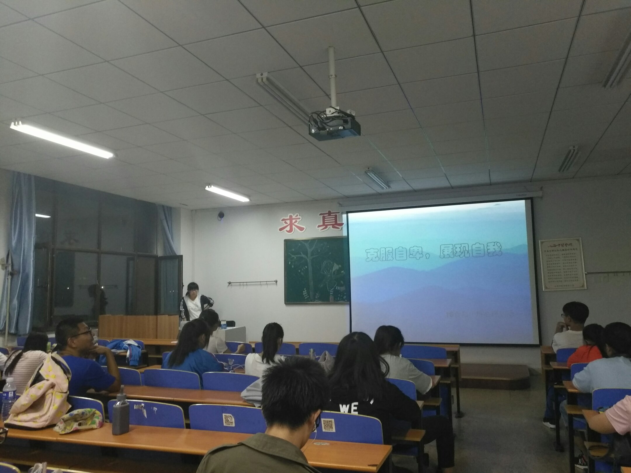 16级食品科学与工程一班全体同学于2017年9月12日晚上7点30分在和济书院甲座320教室开展以“克服自卑,展现自我”为主题的心理活动,旨在通过此次心理活动,使同学们懂得展现自我,学会宽容谦和的态度与人相处,克服自卑,善于表现自己。本次心理活动由李鹏霞同学主持。