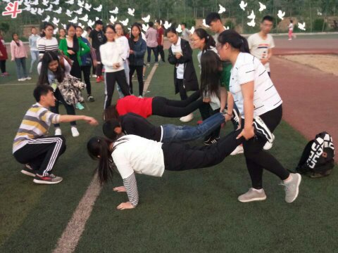 为了增加活动的趣味性,我们以团体活动的形式,开展此次活动。活动分为两部分,第一部分为“五毛一块”,以个人为单位,男生价值五毛,女生价值一块。由主持人随意说价钱,同学们要立刻做出反应,与合适的同学报团组合,在三十秒内没有成功组队的同学将被淘汰。第二部分为“七手八脚”,以团小组为单位,主持人说“十手五脚”,小组成员要将十只手和五只脚放在地面上,完成动作并且坚持三十秒。同学们各自动脑,积极思考,最终第四团小组组团三连胜,获得冠军。