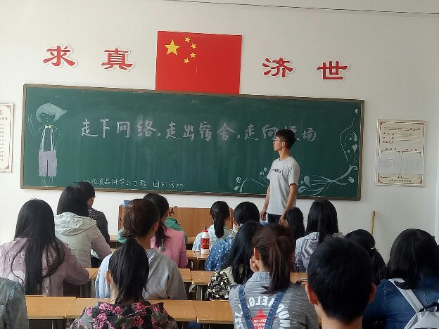 16级食品科学与工程一班全体同学于2017年5月4日早上9点整在和济书院甲座305教室开展以“走下网络,走出宿舍,走向操场”为主题的团日活动,旨在通过此次活动,引导和帮助同学们告别终日沉迷于网络的生活,学会劳逸结合,增强同学们参加体育锻炼的积极性、主动性,形成良好的体育锻炼习惯,提升身体素质,从中磨砺意志、培养良好品德。此次活动由体育委员王航同学主持。