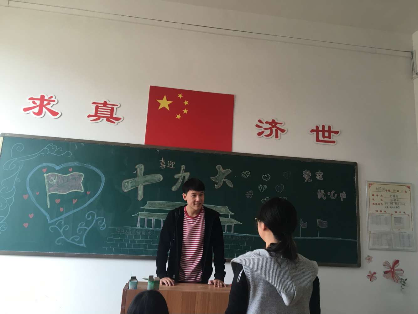 为使同学们深入学习贯彻习近平总书记系列重要讲话精神和治国理政的新思想新理念,2017年4月14日14级制药2班全体同学于和剂书院106教室参加了以“喜迎十九大”为主题的团日活动,团支书王媛担任此次活动的主持人。