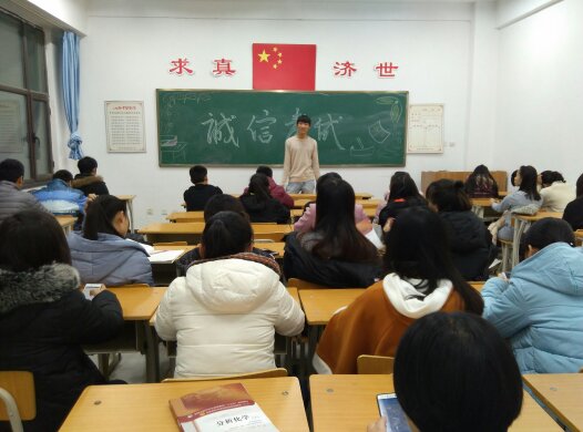 临近期末,同学们都在为考试做着最后的冲刺。复习固然重要,但考风考纪依然要强调。2016年12月20日晚15级食品科学与工程三班在仁爱书院411教室召开“诚信考试”主题班会。