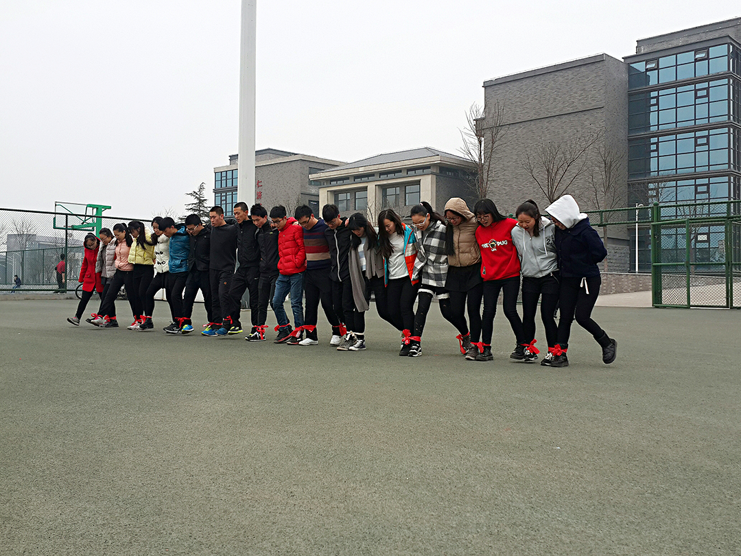 同学们对于此次活动抱有极大的热情,不仅在比赛前几日组织训练,在比赛当日也是提前训练,做好准备。“多人多足”比赛对参与者彼此之间的默契和团结合作能力要求甚高,所以在开始训练的时候难免会有磕磕碰碰,困难较多,绑在脚踝上的绳子经常把脚勒红,但同学们不抱怨,仍然坚持训练。每一双搂紧彼此肩膀的手都是同学们坚定信念的表现。伴随着1-2-1-2的口号,一步一步的,从小步到大步,从慢速到快速,不断练习。正式比赛时,同学们喊着响亮的口号,迈着整齐的步伐,零失误的到达终点。尽管无缘名次带来了些许遗憾,但被竞技时的热烈、紧张氛围所感染,同学们都流露出了开心和兴奋。