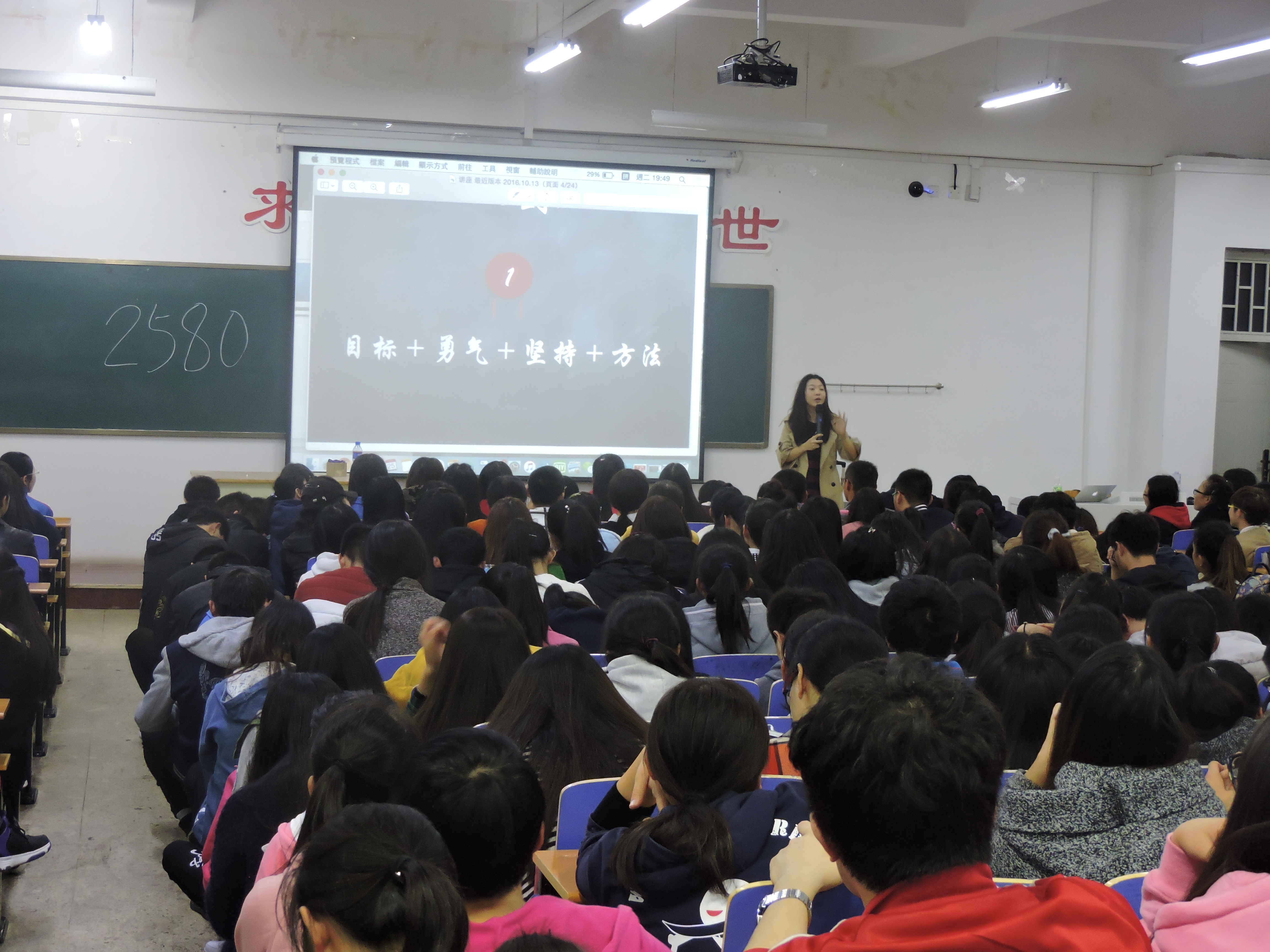 为使同学们更好的掌握英语学习技巧,并对自己未来发展方向有更明确的目标,2016年10月25日19点整北京新东方教育机构在仁济书院乙座223教室开展讲座。吴欣蔚老师担任主讲老师,全场座无虚席。