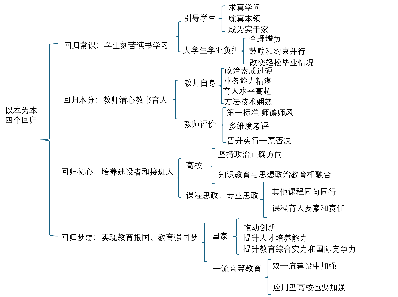坚持以本为本、推进四个回归,加快建设高水平本科教育、全面提高人才培养能力,造就堪当民族复兴大任的新时代新人;